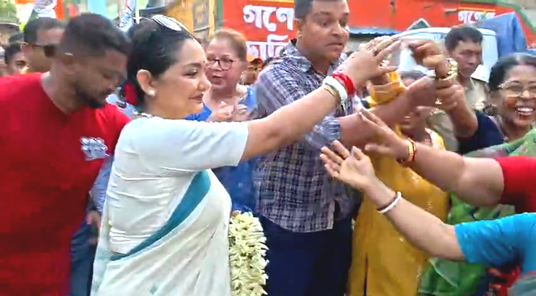 স্থানীয় সূত্রে জানা গেছে, শনিবার সকাল থেকে সংশ্লিষ্ট কেন্দ্রের জোড়াফুল প্রার্থীকে সঙ্গে নিয়ে হুটখোলা গাড়িতে চড়ে জনসংযোগ সারেন জুন মালিয়া। স্টেশন রোড পেট্রোল পাম্প থেকে শুরু করে প্রভু জগবন্ধু কলেজ পর্যন্ত বিশাল পথ পরিক্রমা করেন তারা। প্রিয় তারকাকে চাক্ষুষ করতে রাস্তা জুড়ে ছিল কর্মী-সমর্থকদের উপচে পড়া ভিড়। মিছিল চলাকালীন এক নজিরবিহীন দৃশ্যের সাক্ষী থাকে এলাকা। একই রুটে বামেদের পদযাত্রা চলে আসায় দুই পক্ষ মুখোমুখি হলেও তৈরি হয় সৌজন্যের আবহ। সিপিআইএম প্রার্থী ডাঃ অভিজিৎ বন্দোপাধ্যায় এগিয়ে এসে নন্দিতা চৌধুরীর আশীর্বাদ চাইলে তিনিও সানন্দে তাকে তা প্রদান করেন।