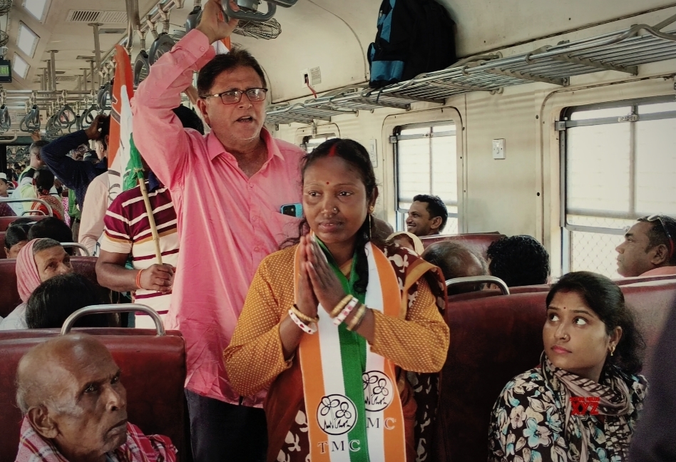 লোকাল ট্রেনে চড়ে সরাসরি যাত্রীদের সঙ্গে জনসংযোগ ও ভোট প্রচার করেন তিনি