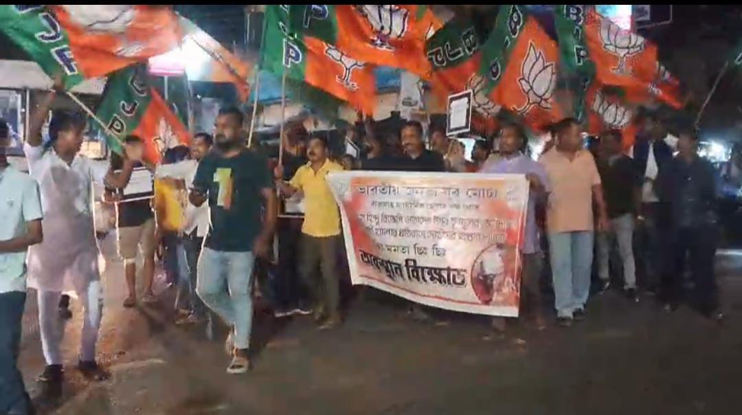 নিজস্ব প্রতিনিধি , উত্তর ২৪ পরগণা - আদিবাসী নেতা তথা মালদহ উত্তরের সাংসদ শ্রী খগেন মুর্মু সহ শঙ্কর ঘোষের ওপর প্রাণঘাতী হামলার প্রতিবাদে মঙ্গলবার রাতে উত্তপ্ত হয়ে ওঠে বারাসাত। বিজেপির যুব মোর্চার নেতৃত্বে বারাসাত হেলাবটতলা মোড়ে প্রায় ৩০ মিনিট ধরে রাস্তা অবরোধ করে বিক্ষোভ প্রদর্শন করা হয়।