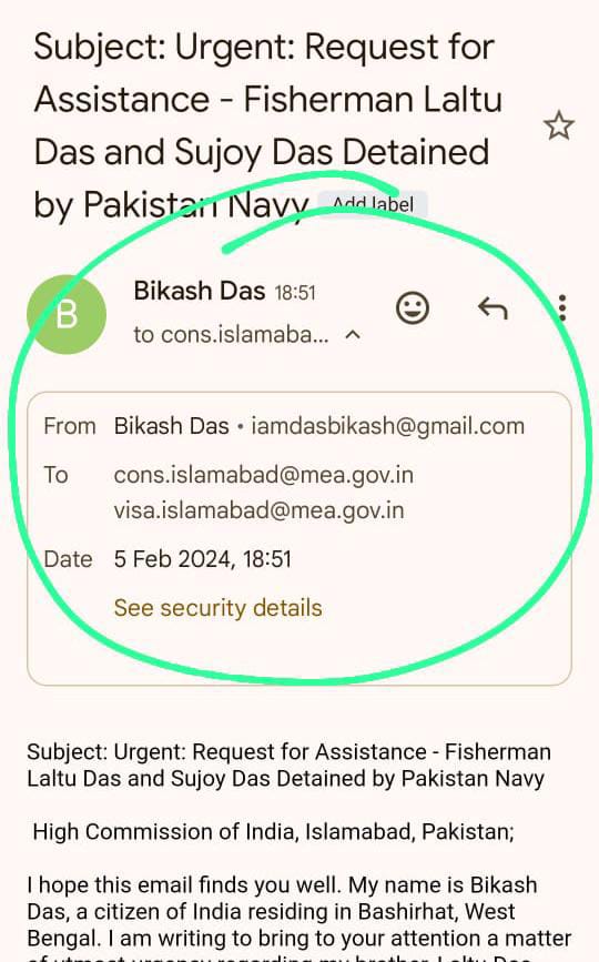 সূত্রের খবর , সাল ২০২৩। ঘটনাটি বসিরহাট মহকুমার ১ নম্বর ব্লকের। মৎস্যজীবীদের নাম লাল্টু বিশ্বাস ও সুজয় দাস। গুজরাটের পোর্টে ঠিকাদার হয়ে মাছ ধরতে গিয়ে ট্রলারে ঘুমিয়ে পড়েন। এরপর সেই ট্রলার পাকিস্তান সীমান্তে ঢুকতেই তাদের আটক করা হয়। এরপর তাদের ল্যান্ডি জেলে বন্দী করে রাখা হয়। একাধিকবার বিদেশ মন্ত্রককে ইমেল করে তাদের ফিরিয়ে আনার অনুরোধ জানানো হয়েছে। দেড় মাস আগে পাকিস্তানের জেল থেকে একটি ভিডিও কল আসে। যেখানে বৃদ্ধা মায়ের সামনে কান্নাকাটি করতে দেখা যায় তাদের। ঠিকমত খেতেও দেওয়া হয়না তাদের।