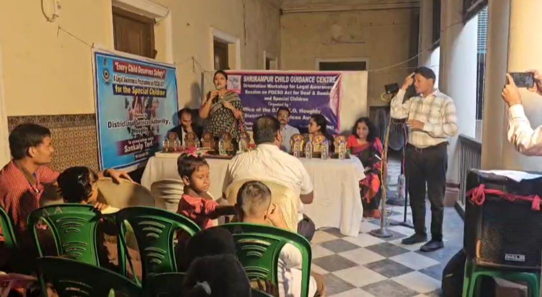 সূত্রের খবর , মঙ্গলবার হুগলীর শ্রীরামপুর রাজবাড়িতে শিশু অধিকার সুরক্ষা আইন (POCSO) বিষয়ক একটি গুরুত্বপূর্ণ সচেতনতা কর্মসূচি আয়োজন করা হয়। এই কর্মসূচি জেলা আইন পরিষেবা কর্তৃপক্ষ (DLSA) হুগলীর উদ্যোগে অনুষ্ঠিত হয়। এই বিশেষ কর্মশালায় অংশগ্রহণ করে শিশু গাইডেন্স সেন্টার , সীরামপুরের বিশেষভাবে সক্ষম (মানসিক প্রতিবন্ধী , শ্রবণ সহ বাক প্রতিবন্ধী) ছাত্রছাত্রী সহ তাদের অভিভাবকগণ।