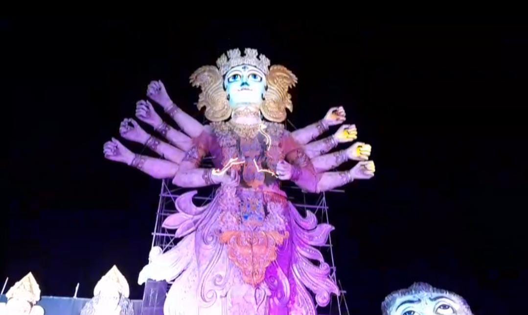 সূত্রের খবর , নদিয়ার ধানতলা থানার অন্তর্গত কামালপুর এখন পরিচিত হচ্ছে বিশ্বের সবচেয়ে বড় দুর্গার গ্রাম হিসেবে। ৫৫ তম বর্ষে কামালপুর অভিযাত্রী সংঘ এক অনন্য নজির গড়ে তুলেছে বিশালাকার মা দুর্গার প্রতিমা নির্মাণ করে। পুজো উদ্যোক্তাদের দাবি অনুযায়ী , এই প্রতিমার উচ্চতা প্রায় ১১২ ফুট। যদিও চূড়ান্ত উচ্চতা এখনও খোলসা করে বলা হয়নি কিছু জটিলতার কারণে। তবে এটিই বিশ্বে নির্মিত সবচেয়ে বড় দুর্গা প্রতিমা বলে দাবি করেছেন তারা।