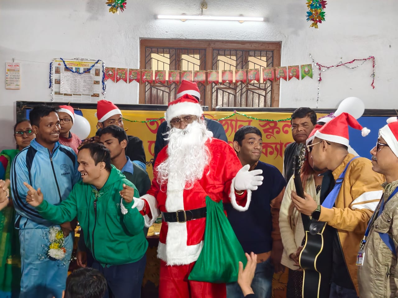 নিজস্ব প্রতিনিধি , হুগলী - বড়দিন আসতে বাকি বেশ কিছুদিন। তার আগেই বিশেষ বাচ্চাদের সঙ্গে দেখা করলো সান্তাক্লজ। হিন্দমোটর এলাকায় অ্যান সুলিভান স্কুল ফর দি মেন্টালী হ্যান্ডিক্যাপ্ড বিদ্যালয়ে হুগলী জেলাপরিষদের মেন্টর সুবীর মুখোপাধ্যায় সান্তা সেজে উপস্থিত হন। জিঙ্গেল বেলস গানে মেতে ওঠে সকল বাচ্চা।