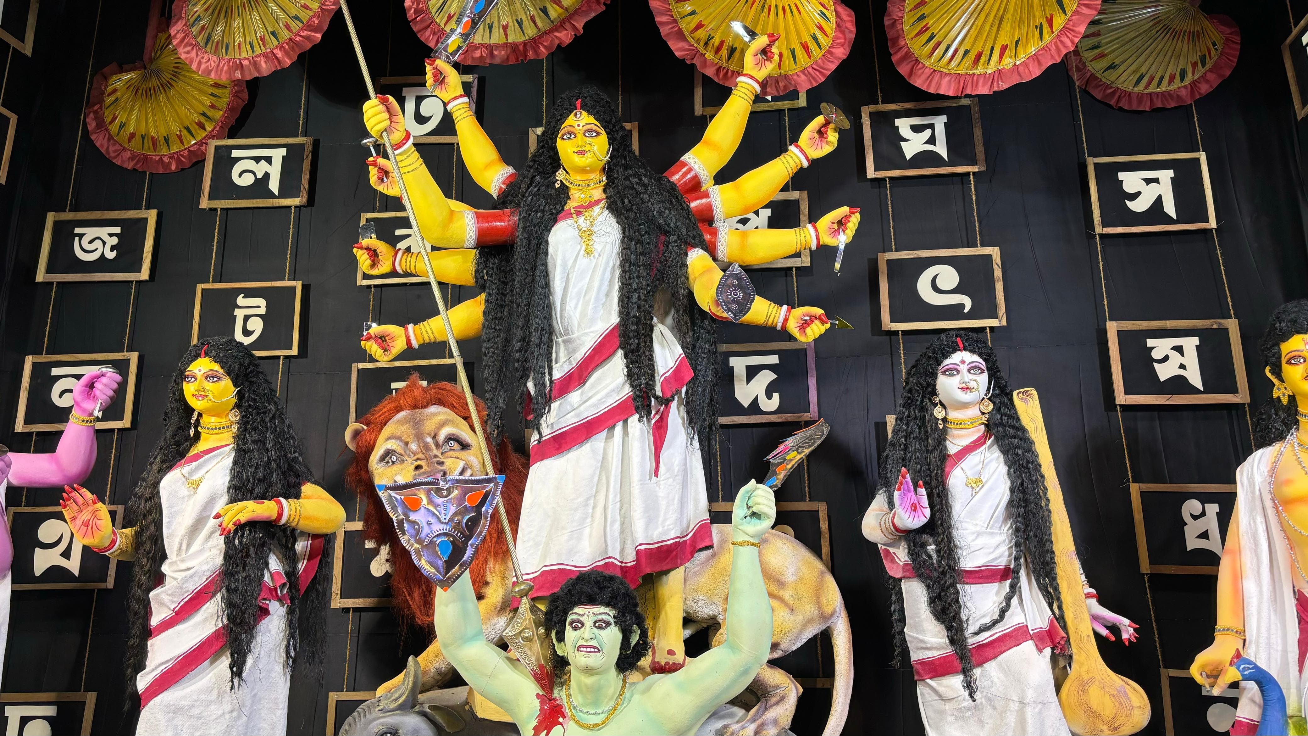 মূলত, সাম্প্রতিক সময়ে দেশের নানা প্রান্তে বাংলাভাষা ও বাঙালি সংস্কৃতিকে নিয়ে যে অকল্পনীয় পরিস্থিতি তৈরি হয়েছে, সেই সামাজিক ও রাজনৈতিক প্রেক্ষাপটেই এই থিমের তাৎপর্য গভীর। নবজাগরণ সংঘ যেন একপ্রকার প্রতিবাদকে শিল্পের মাধ্যমে মণ্ডপে এনে তুলেছে, “বাংলা আমার প্রাণ” আসলে সেই আত্মমর্যাদারই প্রতীক।