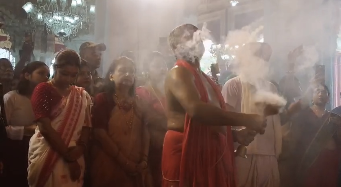 সূত্রের খবর, নদীয়ার কৃষ্ণনগর রাজবাড়িতে শতাব্দী প্রাচীন দশমীর আচার শেষ হলো বৃহস্পতিবার। ভোরের আলো ফোটার সঙ্গে সঙ্গে শুরু হয়েছিল দেবী রাজরাজেশ্বরীর শেষ আরাধনা। প্রাকৃতিক দুর্যোগ থাকলেও মানুষের ভিড় কমেনি। নাটমন্দিরে তখন ভক্তদের ঢল, ঢাকের শব্দে মুখরিত চারপাশ, আর পূজার মন্ত্রপাঠে ভরে ওঠে পরিবেশ।