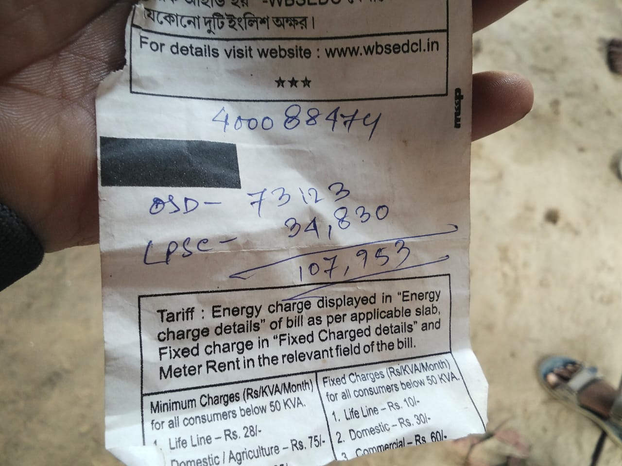 বিশান হেমরম জানিয়েছেন, "এর আগে একাধিকবার বিদ্যুৎ দফতরের কর্মীরা এলাকায় এলেও বিল তুলতে পারেননি। আমাদের বলেছিল মিটারে সমস্যার কারণে বিল নির্ধারণ করা যাচ্ছে না। আমাদের থেকে প্রায় এক লক্ষ তিন হাজার টাকা নেওয়া হয়েছে। তবে তিনটি রসিদ মিলিয়ে মোট অঙ্ক দাঁড়াচ্ছে ৯৮,৩৪০ টাকা। ফলে বাকি প্রায় পাঁচ হাজার টাকা কোথায় গেল, তা জানি না। বাড়িতে মাত্র ২ টি বাল্ব জ্বলত আর একটি টিভি চলত, সেখানে পাঁচ বছরের বিদ্যুৎ বিল ৭৩ হাজার টাকা কীভাবে হল? সমস্ত টাকা জমা দেওয়ার পর মঙ্গলবার বিকেল নাগাদ বাড়িতে ফের বিদ্যুৎ সংযোগ দেওয়া হয়।"
