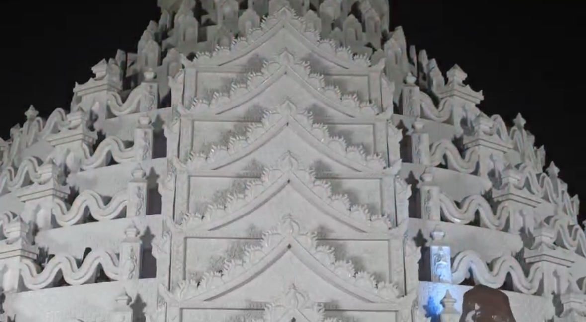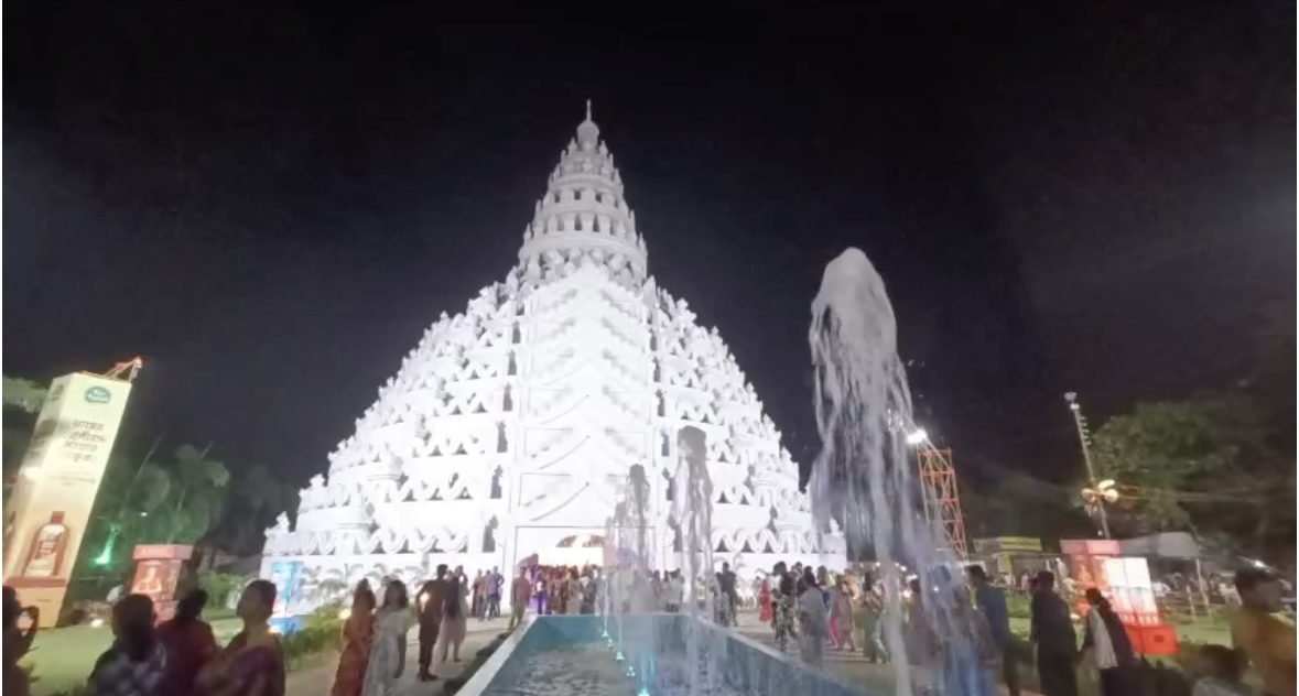 প্রতি বছর অভিনব থিম ও মণ্ডপসজ্জার জন্য যাদের খ্যাতি ছড়িয়েছে দূরদূরান্তে। কখনো মন্দির, কখনো গির্জা, কখনো টাওয়ার। প্রতিটি বছরই নতুন চমক দেখিয়ে আসছে তারা। এবারে তাদের থিম মায়ানমারের বিখ্যাত প্যাগোডা। মণ্ডপের সম্পূর্ণ রূপ সাদা রঙে সেজে উঠছে, যা বিশ্বশান্তির বার্তা বহন করবে বলে জানিয়েছেন উদ্যোক্তারা।