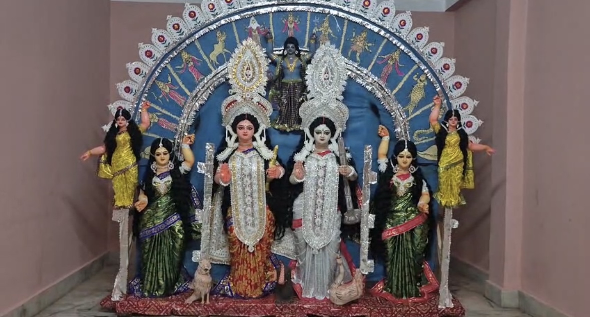 স্থানীয় সূত্রে জানা গেছে, দুই দেবীর মাথার উপর আসন নেন ভগবান নারায়ণ। পাশে থাকেন তাঁদের চারজন সখী, যাঁদের স্থানীয়রা বলেন ‘লুক-লুকানি’। এই ভাবেই এখানে নারায়ণের গোটা পরিবারকেই পুজো করা হয়। এ এক অনন্য প্রথা, যা চলছে টানা ১৬৩ বছর ধরে। পুজো ঘিরে উৎসবের আমেজে মুখর থাকে গ্রামজীবন। প্রতি বছর কয়েক হাজার মানুষ ভিড় জমান এই বিশেষ পুজো দেখতে। পুজোর সবচেয়ে বড় আকর্ষণ পরিবেশবান্ধব সবুজ আতসবাজির প্রদর্শনী, যা দেখতে ভিড় উপচে পড়ে।