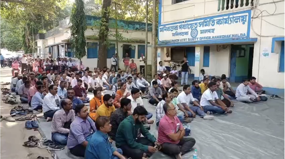 অস্থায়ী কর্মীর মৃত্যুকে কেন্দ্র করে প্রশাসনের বিরুদ্ধে বিক্ষোভে উত্তপ্ত মানিকচক ব্লক অফিস চত্বর