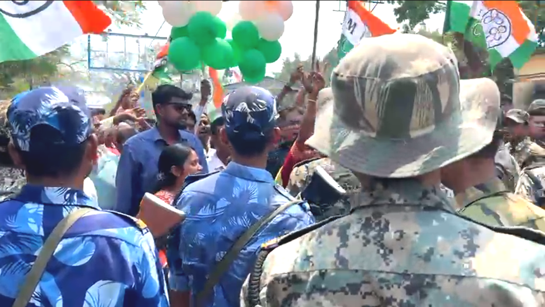 যার জেরে মুহূর্তের মধ্যে দুই পক্ষের মধ্যে প্রবল বচসা-সহ রাজনৈতিক অস্থিরতা তৈরি হয়। পরিস্থিতি বেগতিক দেখে দ্রুত ঘটনাস্থলে মোতায়েন থাকা বিশাল পুলিশ বাহিনী ও কেন্দ্রীয় জওয়ানরা সক্রিয় হয়ে ওঠে। উভয় শিবিরের এই স্লোগান প্রতিযোগিতায় এলাকা রণক্ষেত্রের চেহারা নিলেও নিরাপত্তা রক্ষীদের তৎপরতায় বড়সড় কোনো অপ্রীতিকর ঘটনা এড়ানো সম্ভব হয়েছে।