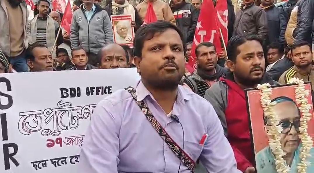 SIR-এর নামে সাধারণ মানুষকে অযথা হয়রানি করার অভিযোগ তুলছে সিপিআইএম।দরখাস্ত জমা দেওয়ার পরও অনেকের নাম বাদ যাওয়া নিয়ে তুমুল বিক্ষোভ বামফ্রন্টের। স্বরূপনগরে রাস্তা অবরোধ করল তারা। স্বরূপ নগরীর মালঙ্গোপাড়া মাঠ থেকে এক বিক্ষোভ মিছিল শুরু হয় সেই মিছিল এসে স্বরুপনগর বিডিও অফিসের সামনে রাস্তা অবরোধ করে বিক্ষোভ দেখানো হয়। যার নেতৃত্ব দিয়েছেন বাইট রফিকুল সরদার সিপিএম নেতা।