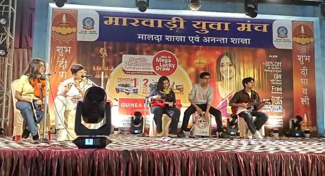 নিজস্ব প্রতিনিধি , মালদহ - প্রত্যেক বছর মাড়োয়ারি যুব মঞ্চ মালদহ জেলা শাখার উদ্যোগে পালিত হয় দীপাবলীর মিলন উৎসব। এই বছরও তার অন্যথা হয়নি। মালদহ শহরের মাড়োয়ারি যুব মঞ্চের সকল পদে পদাধিকারী সদস্যবৃন্দ সহ তাদের পরিবারের উপস্থিতিতে এই সাংস্কৃতিক সন্ধ্যার আয়োজন করা হয়। অনুষ্ঠানে অংশগ্রহণ করে যুব মঞ্চের ছেলে মেয়েরা।
