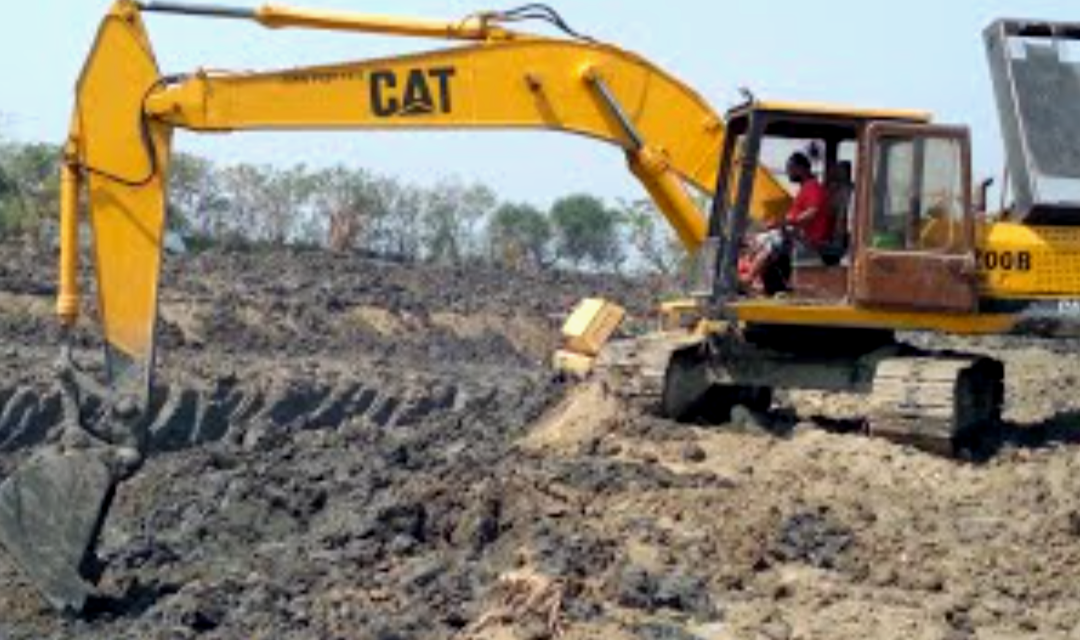 জেসিবি দিয়ে পাড়ের পাইলিংয়ের কাজ চলাকালীন আচমকাই বিশাল মাটির স্তূপ ভেঙে পড়ে