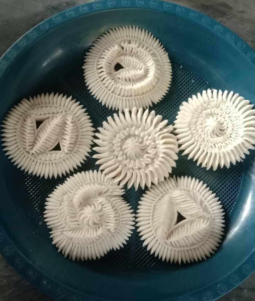 নকশি পিঠে মূলত শিল্প আর খাদ্যের মিলন। চালের গুঁড়ো দিয়ে ফুল, পাতা বা জ্যামিতিক নকশা এঁকে তেলে ভেজে নেওয়া হয়। গ্রামবাংলায় মেয়েরা দল বেঁধে নকশি পিঠে বানাতেন, যা সামাজিক মিলনেরও এক মাধ্যম ছিল।