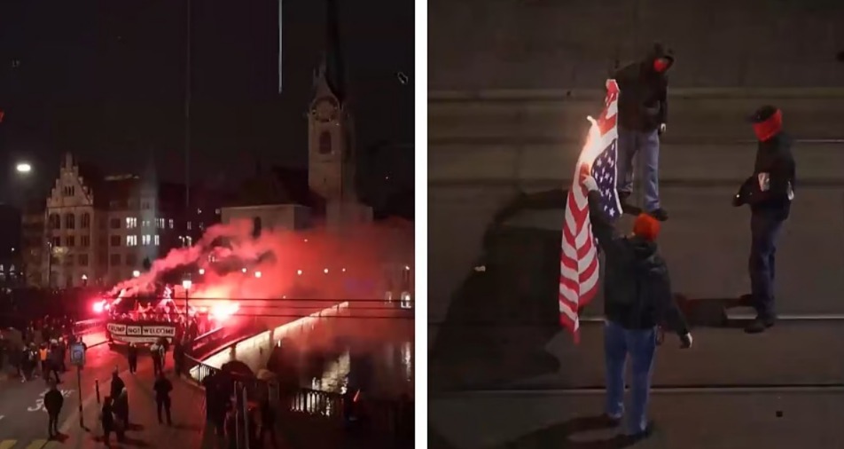 আমেরিকার পতাকা পুড়িয়ে বিক্ষোভ