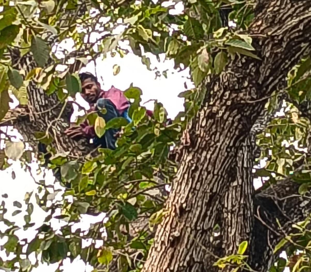 স্থানীয় সূত্রের খবর , সোমবার সকালে নদীয়ার শান্তিপুর থানার অন্তর্গত উদয়পুর প্রাইমারি স্কুলের সামনে এক অদ্ভুত ঘটনা ঘটে। কাঁধে ব্যাগ, হাতে লাঠি নিয়ে প্রায় চল্লিশ ফুট উঁচু কদম গাছের ডালে বসে থাকতে দেখা যায় এক যুবককে। শান্তিপুর থানার পুলিশ আর দমকলকর্মীরা খবর পেয়ে ঘটনাস্থলে পৌঁছান। প্রায় দু ঘণ্টার চেষ্টার পর মদের প্রলোভন দেখানো হয় তাকে। শেষ পর্যন্ত যুবক গাছ থেকে নীচে নামেন।