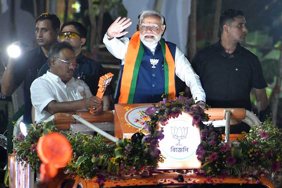 পুজো দিয়ে রোড শো শুরু করেন নরেন্দ্র মোদি