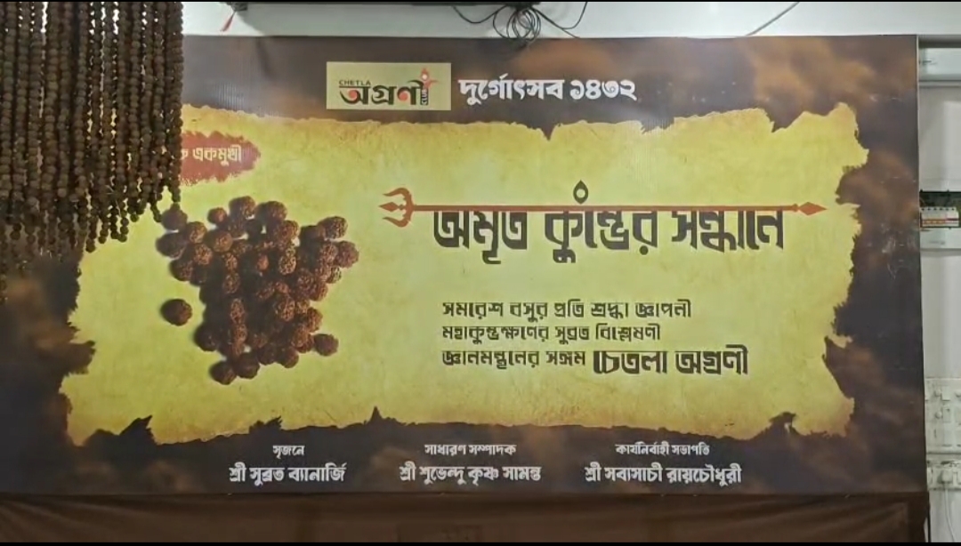 সূত্রের খবর, পুজো প্রায় দোরগোড়ায়। কলকাতার সমস্ত বড়বড় পুজোর প্রস্তুতি প্রায় শেষ দিকে। দক্ষিণ কলকাতার সমস্ত পুজোর মধ্যে অন্যতম চেতলা অগ্রণী ক্লাব। প্রতিবছরই এই ক্লাবের থিম নজর কাড়ে মানুষের। তাই এই বছরের থিম ও পুজো সম্পর্কিত যাবতীয় বিষয় নিয়ে সাংবাদিক বৈঠক করেন মূল উদ্যোক্তা ফিরহাদ হাকিম। তিনি জানান, ' এই বছরের পুজো ৩৩ বছরে পা দিলো। এবারের থিম ‘অমৃত কুম্ভের সন্ধানে’ যা মূলত সমরেশ বসুর প্রতি শ্রদ্ধা জ্ঞাপনে বানানো হয়েছে। বৃষ্টির জন্য এই বার বেশ কিছু কাজ আটকে গেছে সেগুলো শেষ করতে সময় লাগবে কিছুটা। তাই ২১ সেপ্টেম্বর মহালয়ার দিন দেবীর চক্ষু দানের পর ২৪ তারিখ থেকে সাধারণের জন্য মণ্ডপ খুলে দেওয়া হবে।'
