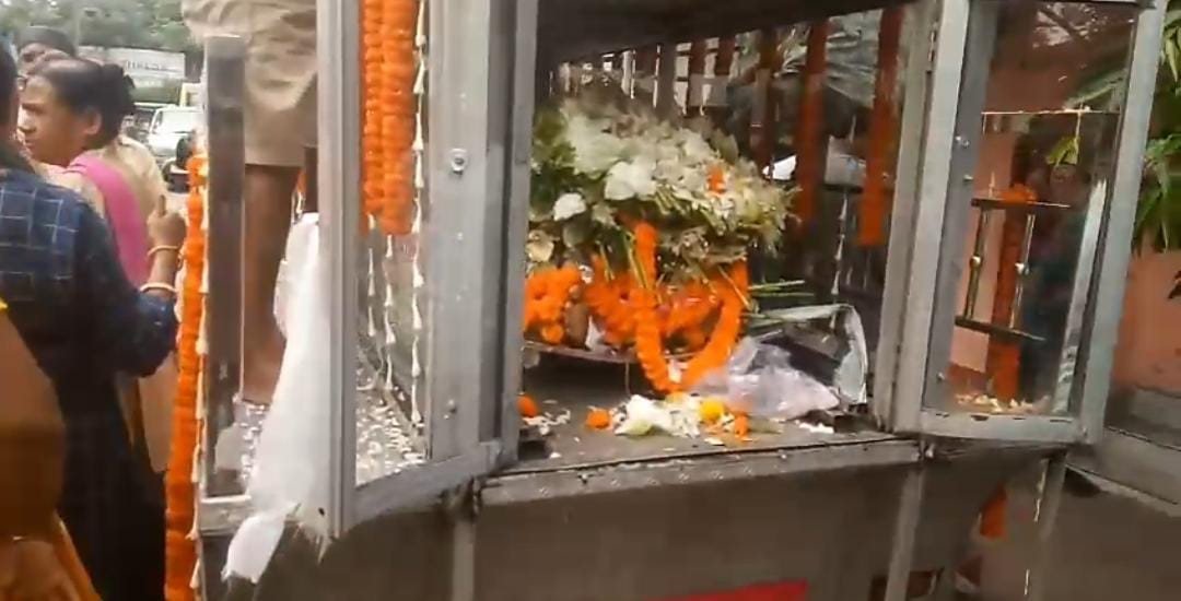 বাড়ির সামনে ফুল মালা দিয়ে সাজানো শববাহী গাড়িতে সকলেই তাঁকে প্রণাম করেন। এদিন তাঁকে সম্মান জানাতে একত্রিত হন বহু মানুষ। মানুষের জন্য যে সত্যিই কাজ করেছেন , মৃত্যুর পর বুঝিয়ে গেলেন তিনি। সকলেই ভালবাসা সহ সম্মানের জেরে আজকে একজোট তাঁকে শেষবার দেখতে উপস্থিত হন। শববাহী গাড়ির সামনেও কালো রঙের বিশেষ ব্যানারে তাঁর ছবি দিয়ে সাজানো হয়। শববাহী গাড়ির সামনে লেখা ছিল , "যে শূন্যতা আজ তৈরি হল তা অপূরণীয়। তাঁর পরিবার আত্মীয় স্বজন সহ সকলের প্রতি জানাই গভীর সমবেদনা।"