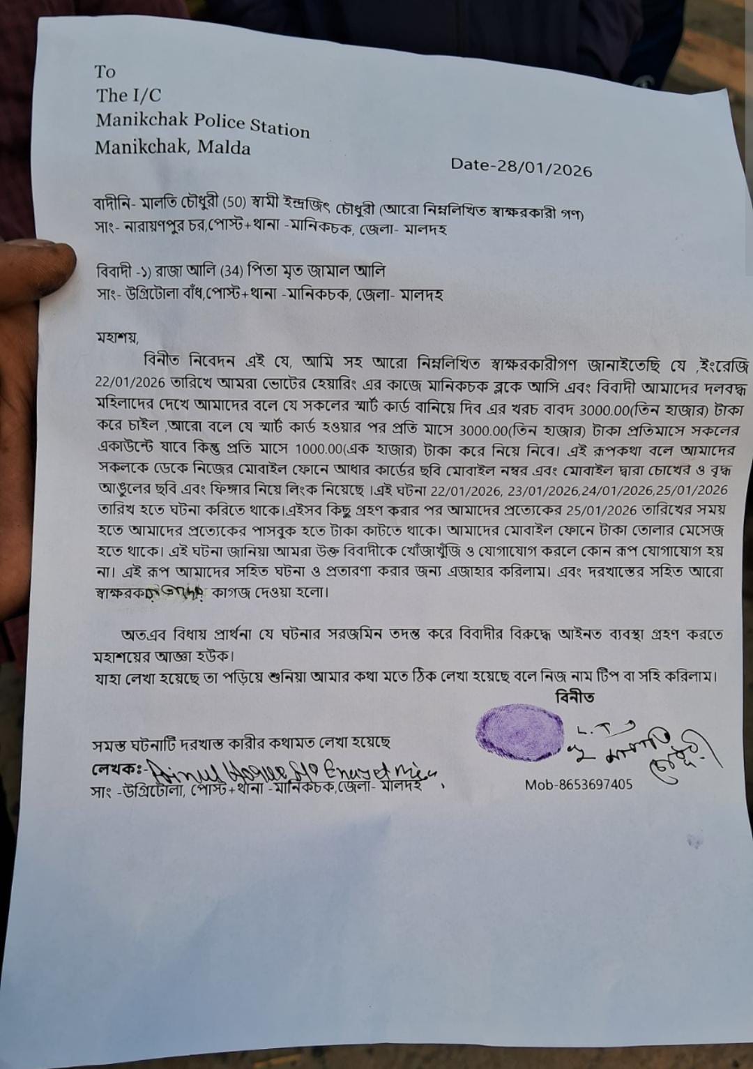 নিজস্ব প্রতিনিধি , মালদহ - SIR শুনানির লাইনে প্রতারণার ফাঁদ। রাতারাতি ফাঁকা হয়ে গেল ৩৪টি অ্যাকাউন্ট। সর্বস্ব সঞ্চয় হারিয়ে ফেললেন ওই মহিলারা। স্মার্ট কার্ড করে প্রতি মাসে তিন হাজার টাকা পাইয়ে দেওয়ার প্রলোভন দেখিয়ে মহিলাদের কাছ থেকে টাকা হাতিয়ে নেওয়ার অভিযোগ। ঘটনায় ব্যাপক চাঞ্চল্য ছড়িয়েছে মানিকচকে। ঘটনায় গ্রেফতার করা হয়েছে অভিযুক্তকে।