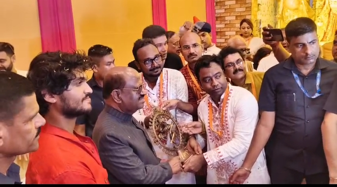 সূত্রের খবর, শনিবার বিকেলে শ্রীরামপুরের ঐতিহ্যবাহী বেনিয়াপাড়া বারোয়ারী দুর্গাপুজোর উদ্বোধন করলেন রাজ্যপাল সি ভি আনন্দ বোস। সন্ধ্যায় ফিতা কেটে ও প্রদীপ জ্বালিয়ে আনুষ্ঠানিকভাবে পুজোর সূচনা করেন তিনি। পুজো উদ্যোক্তাদের পক্ষ থেকে রাজ্যপালকে নটরাজের মূর্তি ও ছবি দিয়ে সংবর্ধনা জানানো হয়। উদ্বোধনের পর মণ্ডপে কিছুটা সময় কাটিয়ে তিনি রাজভবনের উদ্দেশ্যে রওনা দেন।