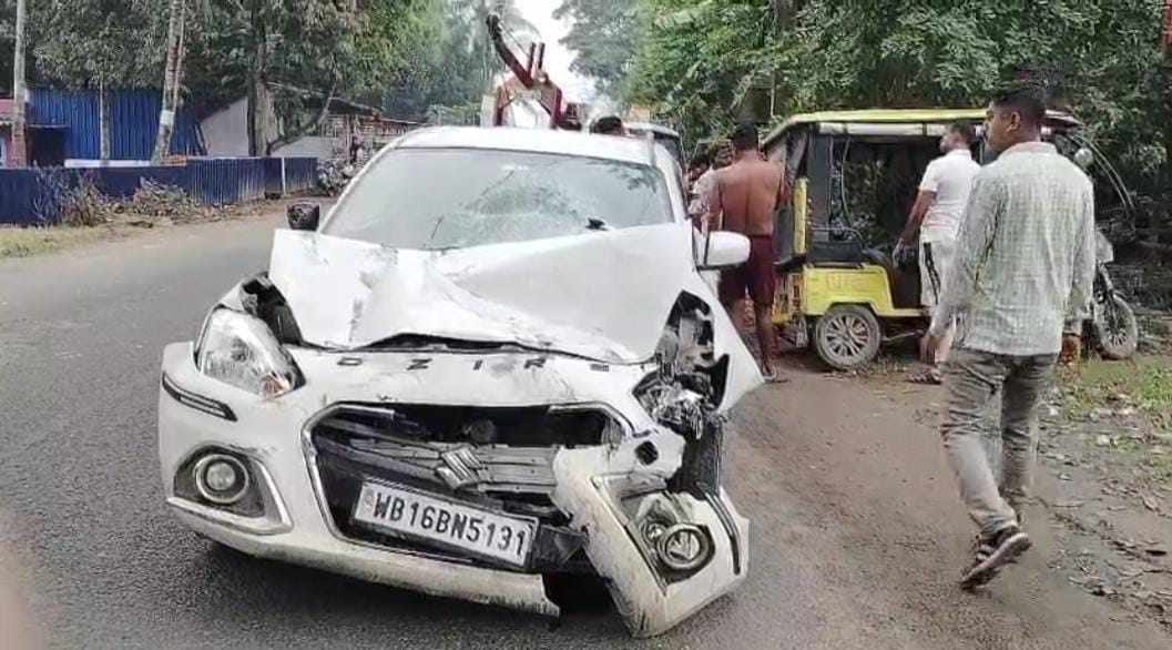 সূত্রের খবর , একটি টোটো যাত্রী নিয়ে চুঁচুড়া স্টেশন থেকে সুগন্ধার গোটুর দিকে যাচ্ছিল। দিল্লী রোডের কিছুটা আগে পুরোনো পুকুরের কাছে একটি মারুতি গাড়ি সজোরে ধাক্কা মারে টোটোটিকে। সংঘর্ষের জেরে টোটো সহ মারুতি উভয় গাড়ির সামনের অংশ দুমড়ে মুচড়ে যায়। টোটোয় থাকা তিনজন মহিলা যাত্রী গুরুতর জখম হন। টোটো চালক মনোজ ঘাঁটির মাথায় আঘাত লাগে। স্থানীয়রা ছুটে এসে পুলিশে খবর দেন। পরে পোলবা থানার পুলিশ ঘটনাস্থলে পৌঁছে চারজন আহতকে উদ্ধার করে চুঁচুড়া ইমামবাড়া হাসপাতালে ভর্তি করে।