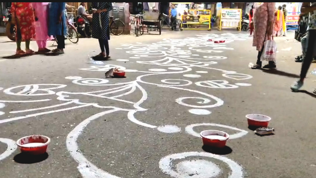 বুধবার সকাল থেকেই দেখা যায় , এলাকার প্রতিটি প্রধান রাস্তায় ফুটে উঠেছে রঙিন আল্পনা। ১লা বৈশাখের আবেগকে আরও রঙিন করতে রাত জেগে পরিশ্রম করেছেন চারুকলার শিক্ষার্থীরা। রাজপথের পিচ থেকে গলির মোড়- সর্বত্রই এখন বিরাজ করছে নববর্ষের রঙিন ছোঁয়া। সাধারণ মানুষের কথায়, এমন শৈল্পিক আবহে নববর্ষ বরণ শহরবাসীকে নতুন করে আনন্দ দিয়েছে।