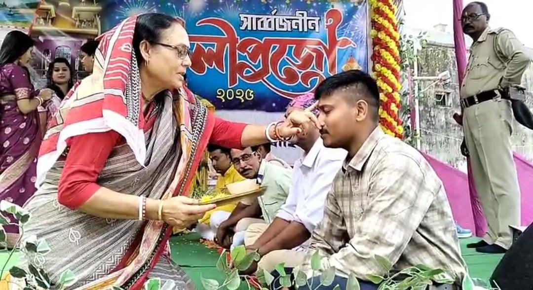 ইংরেজবাজারে ভাইফোঁটায় সাংসদ খগেন মুর্মুর কপালে ফোঁটা