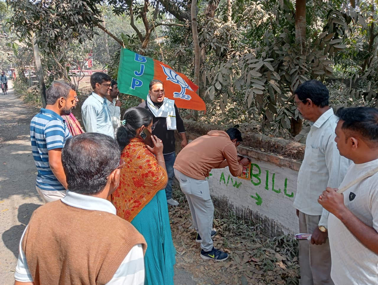 ঘটনায় এক বিজেপি নেতা জানিয়েছেন , "আমরা আগে দেওয়ালে চুন দিয়েছিলাম। তারপর তৃণমূল রাতের অন্ধকারে সেসব দেওয়ালে লিখে দিয়েছে বিজ্ঞাপন মারিবেন না। প্রথমত ঠিক নয় , দ্বিতীয়ত সেইসব দেওয়ালে আমরা দেবদেবীর ছবি লাগিয়েছি। এবার দেখা যাক তৃণমূল কি করে। ওরা কি মা কালী , মহাদেবের ছবি তুলে ভোটের প্রচার করবে। তাহলে বোঝা যাবে তৃণমূল সবচেয়ে বড় সনাতন বিরোধী।"